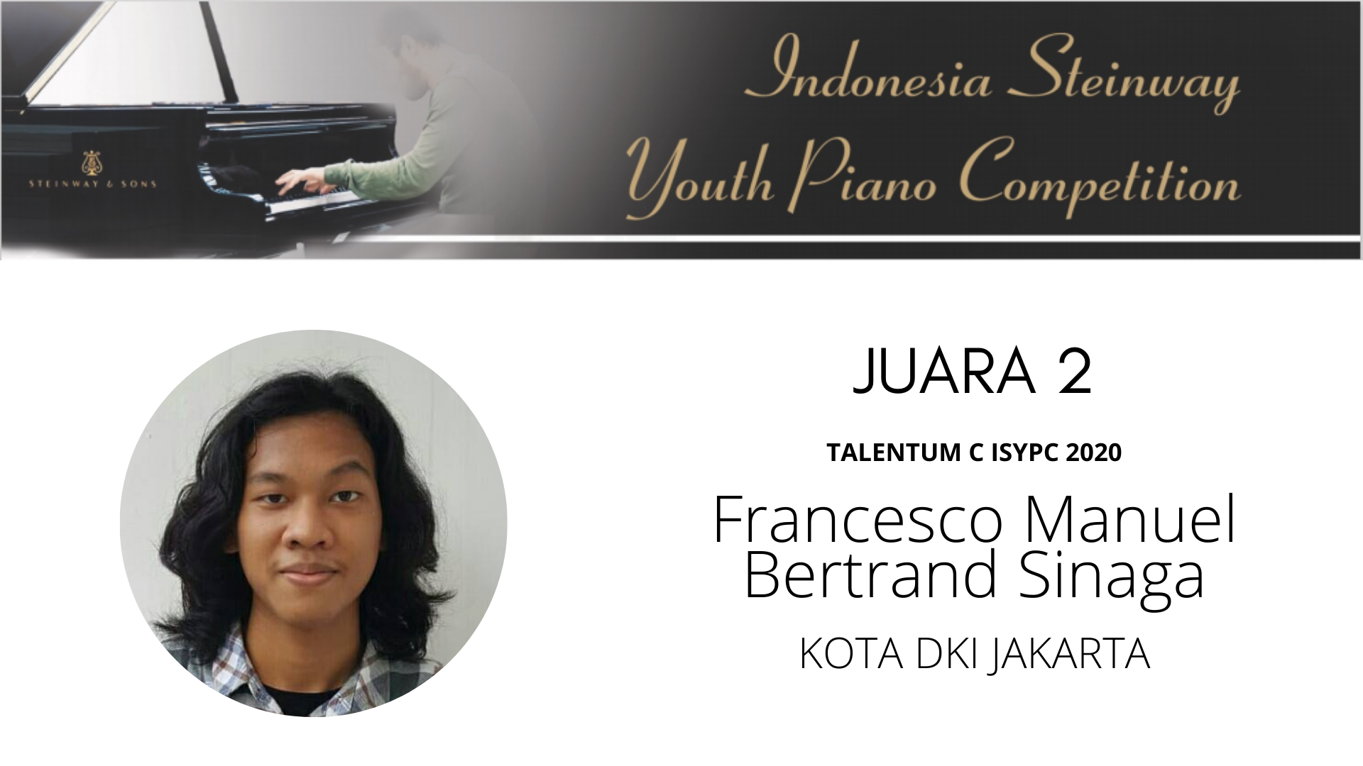 Serta selamat untuk James Napoleon Lai yang akan mewakili Indonesia di Steinway Asia Pacific Regional Finals