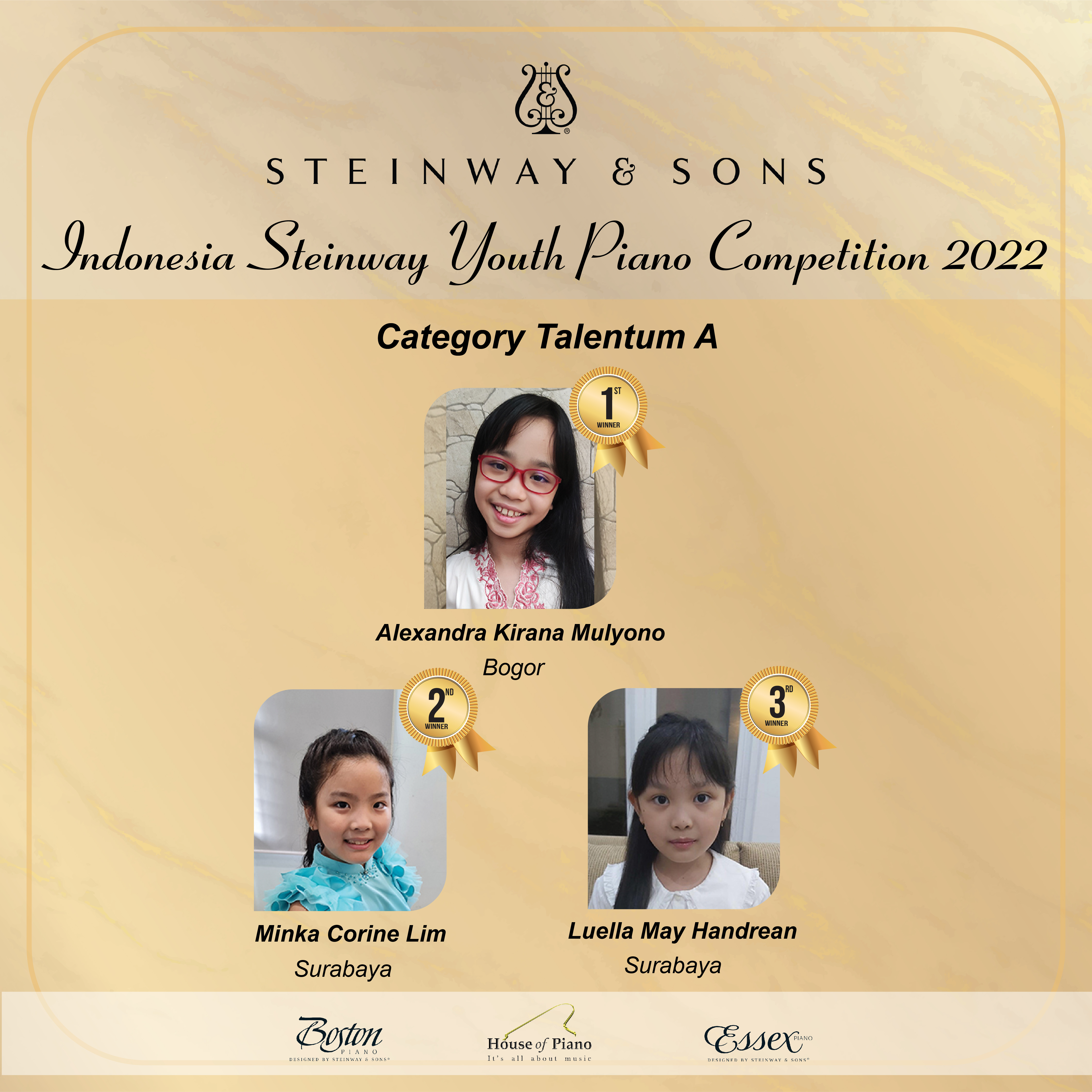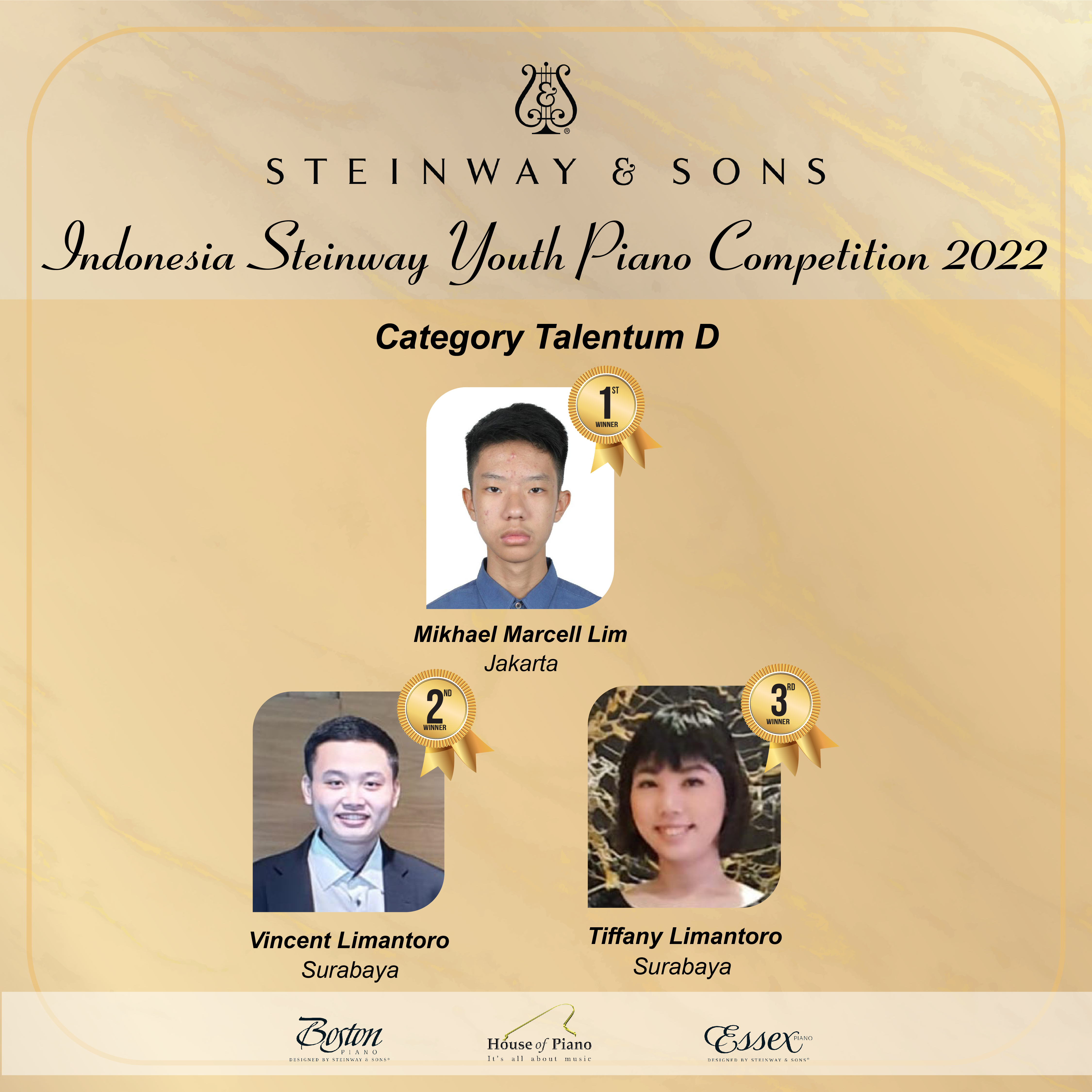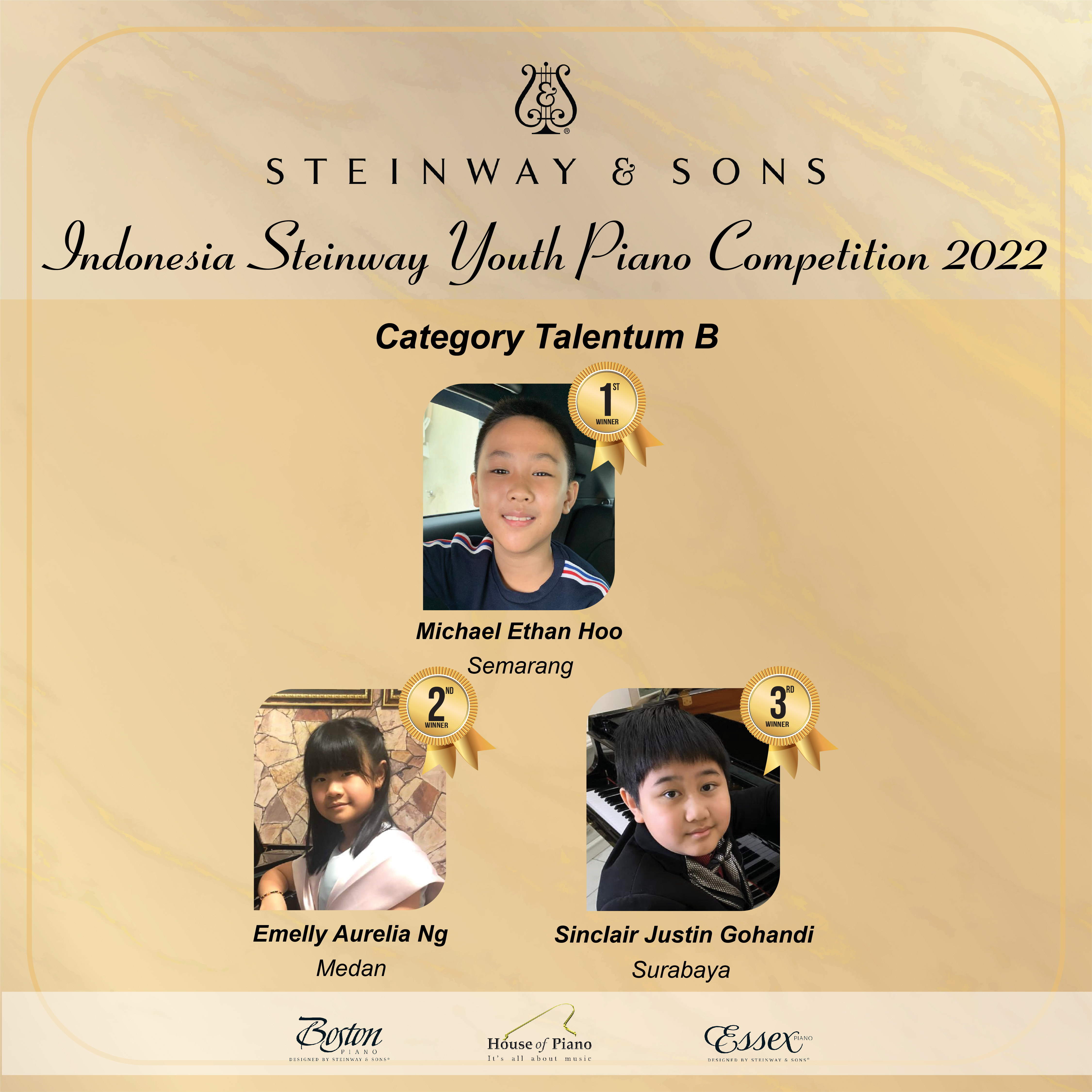Berikut adalah hasil Grand Final Indonesia Steinway Youth Piano Competition 2022 untuk semua kategori: