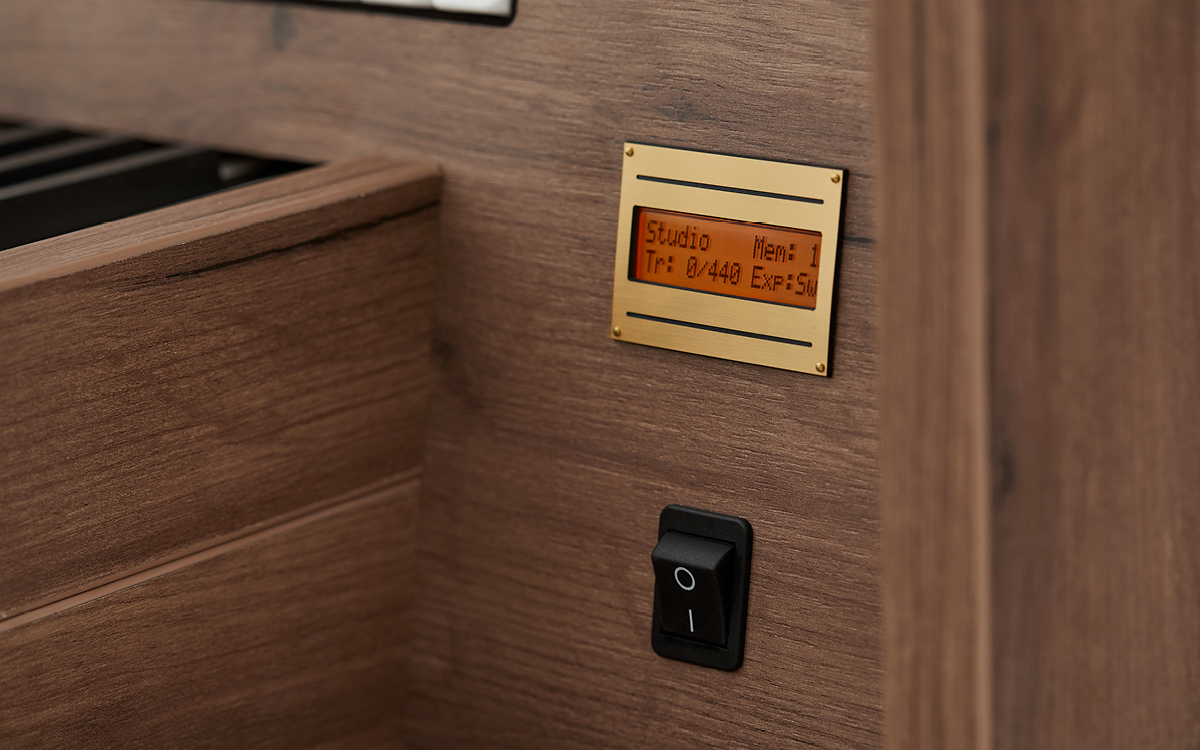 The modern console boasts a sleek, compact design. The Studio will definitely not look out of place in a 21st-century music or living room. It comes in four beautiful colors: Light Riverside, Black North Wood, Nautilus Teak, and Wenge. Its fresh, modern design lets the Studio blend into any interior setting. Because it does not take up much space, the organ will also find a spot in smaller music and living rooms.