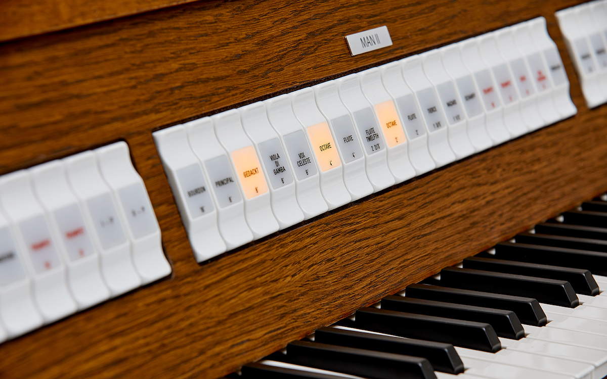 We developed the fixed stoplists based on a sophisticated cross-section of pipe organs from around the world. We analyzed the stoplists of dozens of international pipe organs and identified which stops occurred most frequently among these organs. These included stops such as the Principal 8’, the Flute 4’ and the Trumpet 8’. We gave these stops a place in the standard stoplist of the Johannus LiVE 2T-A and 3T-A, and you find their names on the illuminated stop tabs.