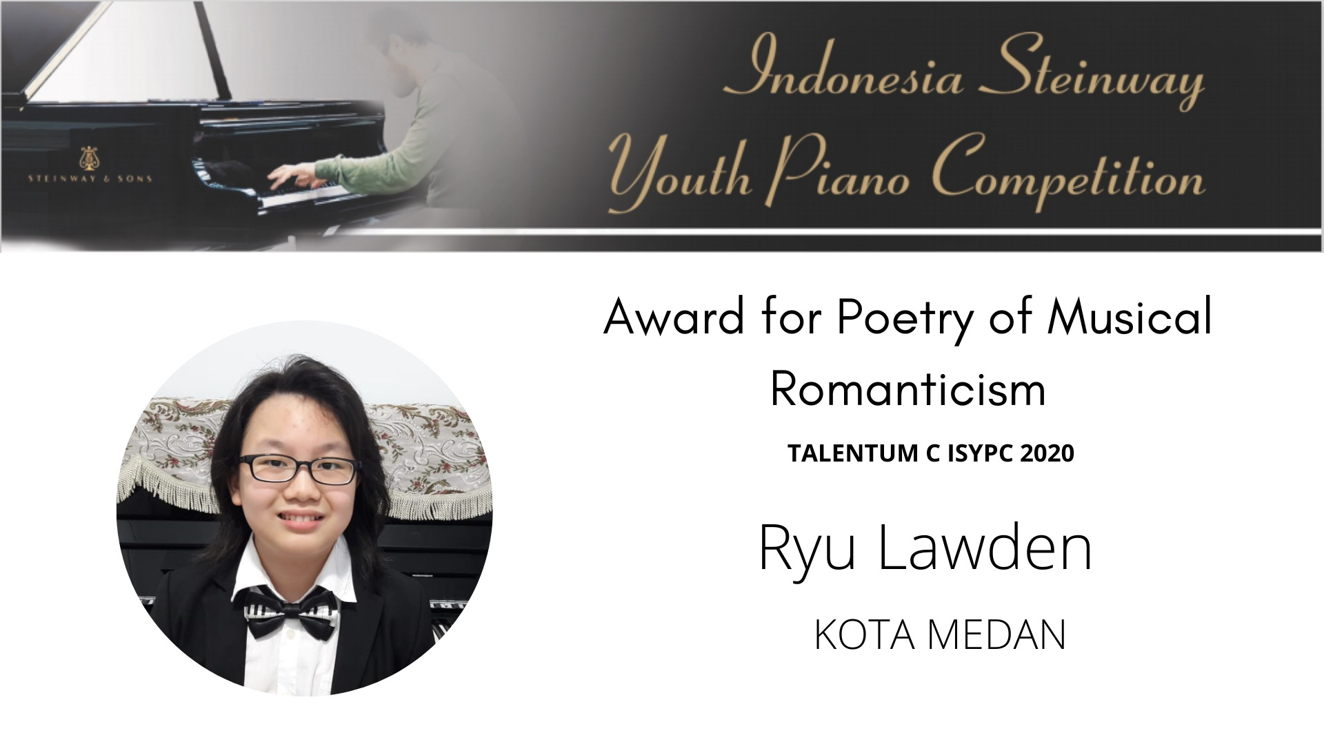 Serta selamat untuk James Napoleon Lai yang akan mewakili Indonesia di Steinway Asia Pacific Regional Finals