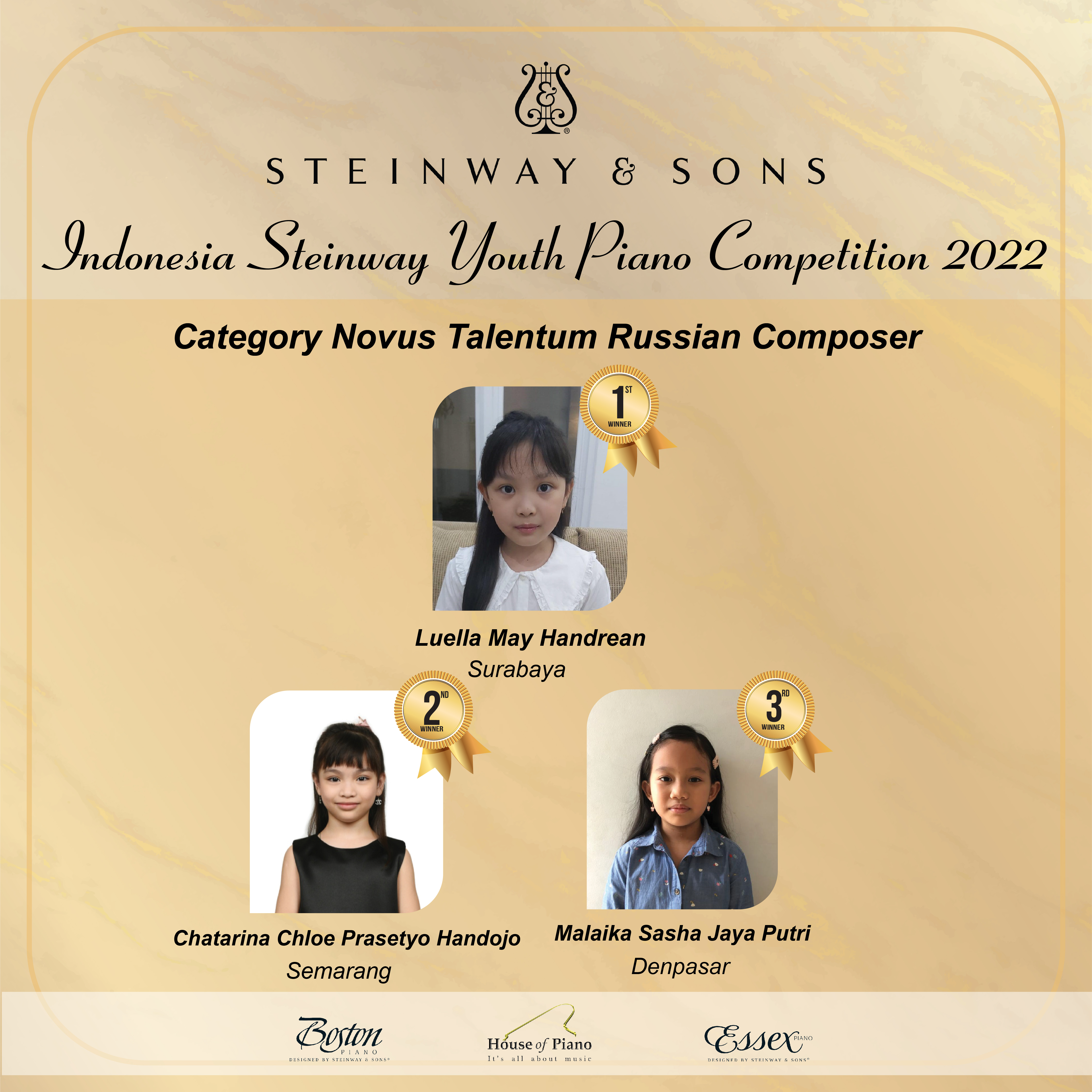 Berikut adalah hasil Grand Final Indonesia Steinway Youth Piano Competition 2022 untuk semua kategori: