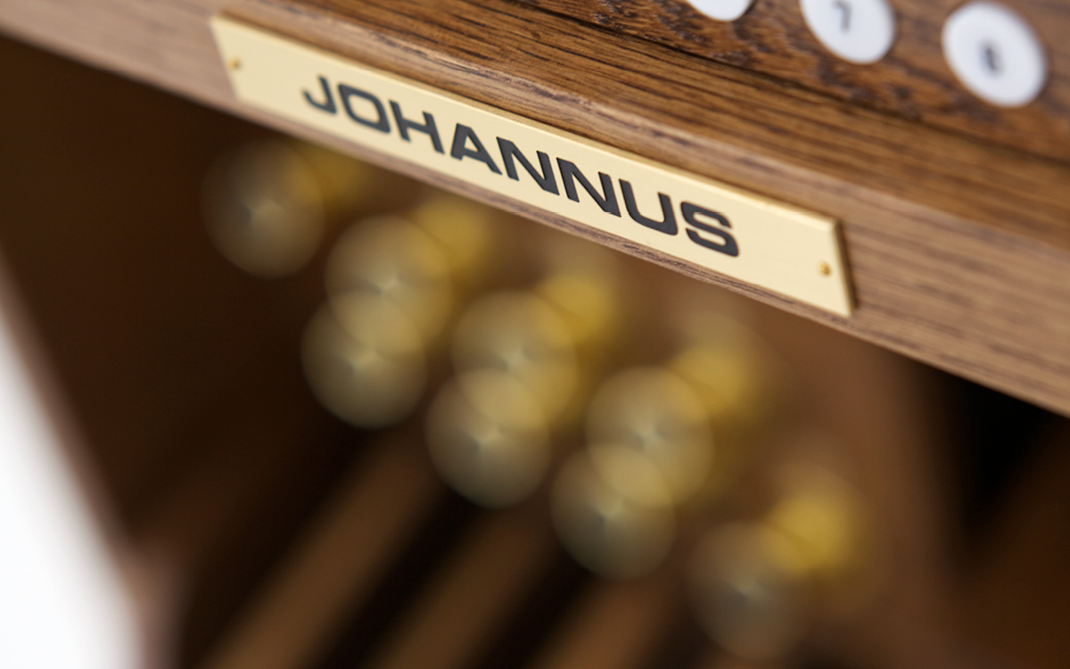 Naturally, Johannus has given a lot of thought to the design of the Ecclesia. However, we like to offer organists the chance to shape the instrument in accordance with their personal wishes and requirements. For example, you can choose a color that matches the interior of your church. You can also expand your organ with elegantly crafted side panels and wooden draw knobs, you can add brass toe studs, or you can opt for extra orchestral voices. Visit our website for a detailed description of all custom options.