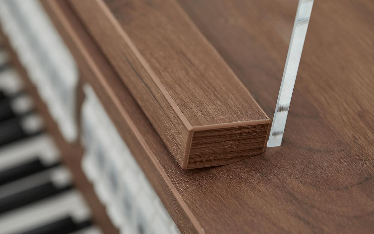 The modern console boasts a sleek, compact design. The Studio will definitely not look out of place in a 21st-century music or living room. It comes in four beautiful colors: Light Riverside, Black North Wood, Nautilus Teak, and Wenge. Its fresh, modern design lets the Studio blend into any interior setting. Because it does not take up much space, the organ will also find a spot in smaller music and living rooms.